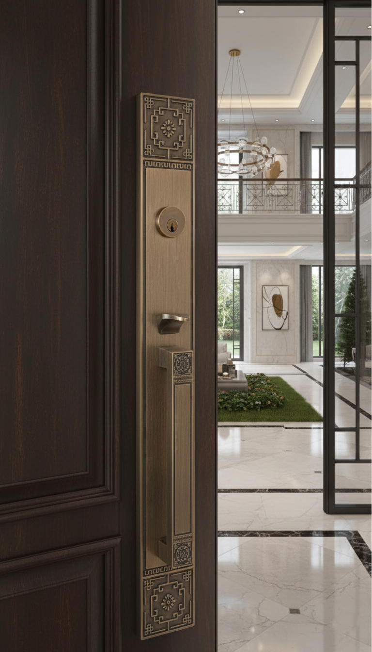- Ideal Pairing: Grand arched entryways and dark mahogany or cherry wood doors.