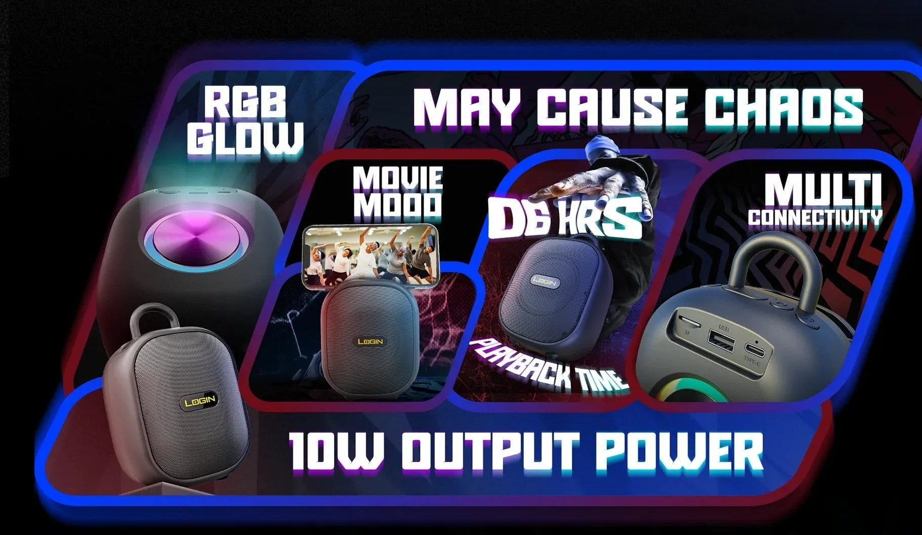 urn every moment into a party with the Login L-273 — a compact party partner built to deliver chaos-certified sound. With 10W output power, booming bass, and RGB glow that drops with every beat, this speaker isn’t just loud — it’s legendary.